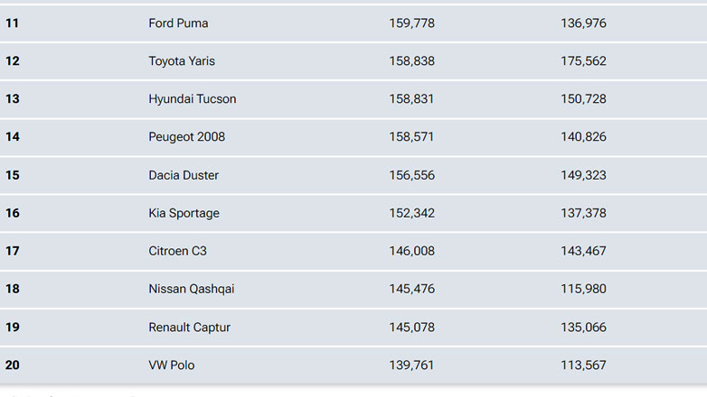 Μάλιστα, όπως θα παρατηρήσετε από τον πίνακα, το Tesla Model Y είναι το μοναδικό EV στην πρώτη 20άδα των πωλήσεων.
