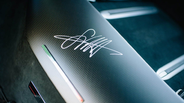 Η ξεχωριστή αυτή F12 TdF είναι βαμμένη στο κόκκινο χρώμα Ferrari Rosso και θεωρείται συλλεκτικό κομμάτι, καθώς είναι υπογεγραμμένη από τον Γερμανό οδηγό της F1. Το supercar διατηρείται σε άριστη κατάσταση, έχοντας διανύσει μόλις 1.862 χιλιόμετρα.