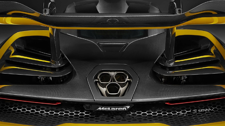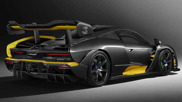 Οι λεπτομέρειες σε Solar Yellow στους αεραγωγούς, την πτέρυγα και τα πλαϊνά αεροδυναμικά στοιχεία, καθώς και οι τεράστιες πράσινες δαγκάνες, κάνουν αντίθεση με το γυμνό carbon και αναδεικνύουν τα «σκληροπυρηνικά» χαρακτηριστικά της Senna.