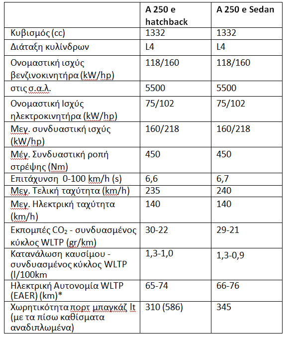Ήδη τα πρώτα A250e & A250e Sedan βρίσκονται στη χώρα μας και είναι διαθέσιμα στις αντιπροσωπίες της μάρκας. Να σημειώσουμε πως στις συγκεκριμένες εκδόσεις λειτουργούν μαζί ο τετρακύλινδρος 1.33 λίτρων βενζινοκινητήρας και ο ηλεκτροκινητήρας προσφέρουν συνδυαστική απόδοση 218 ίππων και συνολική μέγιστη ροπή 450 Νm.