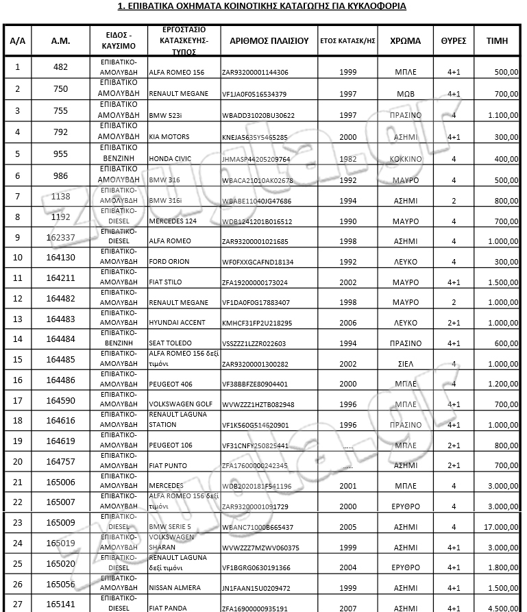 Διαβάστε επίσης: Δημοπρασία με Mercedes SLK (2.000€), Smart (1.000€), ΒΜW X5 (3.000€) κ.ά.