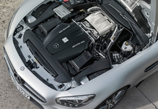 Το εντυπωσιακό μοντέλο που εξελίχτηκε από την AMG GmbH βασίζεται σε ένα αλουμινένιο σασί και διατίθεται με δύο ολοκαίνουργια μηχανικά σύνολα. Πρόκειται για την έκδοση των 4.0 λίτρων twin-turbo V8 που αποδίδει 462 ίππους και παράγει 600Nm ροπής (0-100 σε 4.0 δευτ. και 304 τελική) ενώ υπάρχει και η κορυφαία AMG GT S με 510 ίππους και 650Nm ροπής (0-100 σε 3.8 δευτ. και τελική 310 χλμ./ώρα). Η μετάδοση γίνεται από ένα αυτόματο κιβώτιο ταχυτήτων 7 σχέσεων τεχνολογίας διπλού συμπλέκτη και η ισχύς μεταφέρεται στον πίσω άξονα.