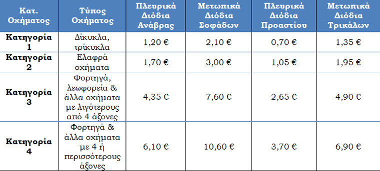 Οι ζώνες χρέωσης που τίθενται σε εφαρμογή στο συγκεκριμένο τμήμα είναι οι παρακάτω δυο: