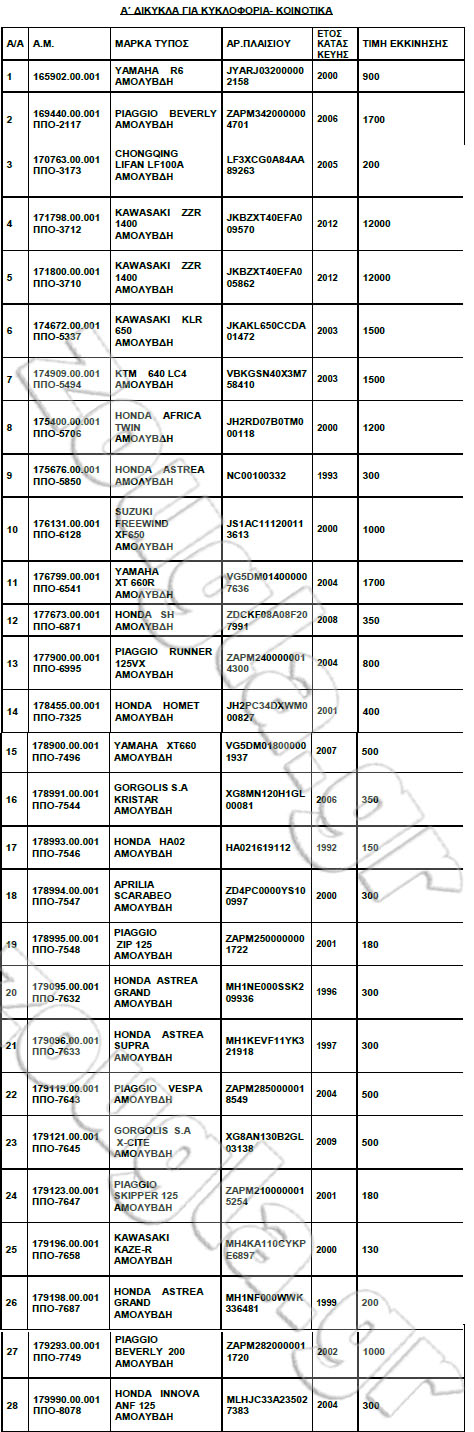 *επίσης δημοπρατείται ένα μοτοποδήλατο Peugeot για 100 ευρώ