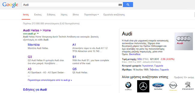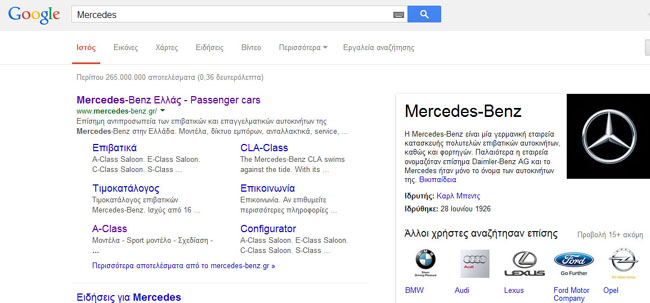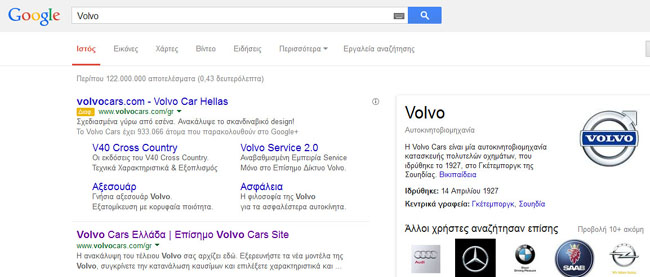 Θελήσαμε να αναζητήσουμε την πιο δημοφιλή πολυτελή μάρκα στη Google, που είναι και η δημοφιλέστερη μηχανή αναζήτησης. Γράψαμε www.google.com και αμέσως μετά πληκτρολογήσαμε τα τέσσερα ονόματα των παραπάνω εταιρειών. Τα… κλικ από τα αποτελέσματα που εμφανίζονται είναι εκατομμύρια και επιβεβαιώνουν την απήχηση που έχουν στους αναγνώστες και φυσικά ιδιοκτήτες. Σύμφωνε με τα αποτελέσματα πρώτη είναι η BMW, ακολουθεί η Mercedes, το βάθρο… συμπληρώνει η Αudi ενώ αρκετά πιο κάτω βρίσκεται η Volvo.