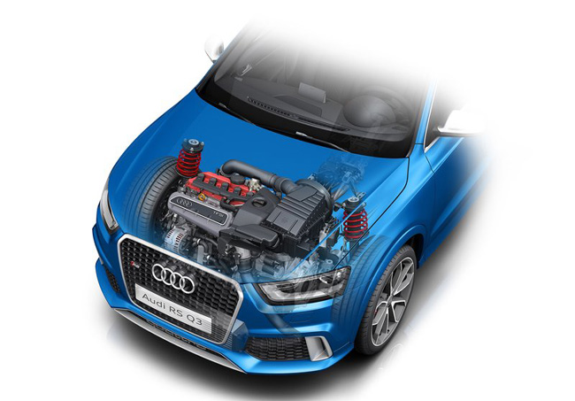 Ο 2.5 TFSI κινητήρας χρησιμοποιείται στο Audi RS Q3. Ο άμεσου ψεκασμού υπερτροφοδοτούμενος κινητήρας αποδίδει ισχύ 310 άλογα από κυβισμό χωρητικότητα 2.480 κ.εκ και παράγει μέγιστη ροπή 420 Nm. Στη γλώσσα των αριθμών το RS Q3 επιταχύνει από στάση στα 100 χλμ./ώρα σε 5,2 δευτερόλεπτα ενώ η μέγιστη ταχύτητά του περιορίζεται ηλεκτρονικά στα 250 χλμ./ώρα.