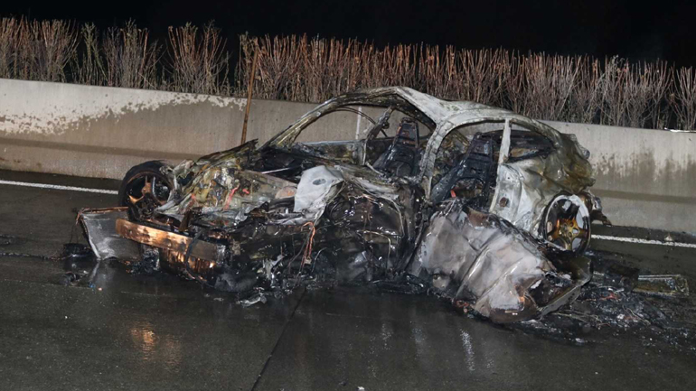 Ο κάτοχος της Porsche μεταφέρθηκε στο νοσοκομείο με ελαφρά τραύματα. Όσο για το όχημα, κατεστράφη ολοσχερώς, όπως και το οδόστρωμα στο σημείο της πυρκαγιάς λόγω της θερμότητας.