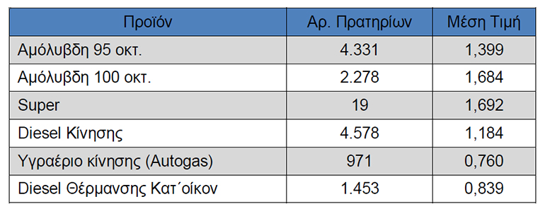 Τα στοιχεία είναι επίσημα από το Υπουργείο Ανάπτυξης και Ανταγωνιστικότητας και αφορούν στο μέσο όρο από δειγματοληψία τιμών που γίνεται σε όλη την Ελλάδα.