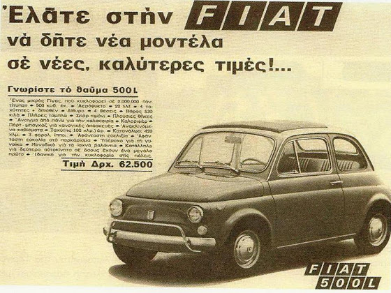 Για παράδειγμα, οι άνθρωποι της Fiat για το πρώτο 500 μιλούσαν για θαύμα. Πλήρες ταμπλό, πλούσιες θήκες, καλοριφέρ, πορτ μπαγκάζ για… κανονικές αποσκευές, ταχύτητα 100 χλμ./ώρα κ.ά. ήταν μερικά από τα προτερήματα που αναφερόντουσαν στην σχετική διαφήμιση για να δελεάσουν τον πελάτη. Ένα αυτοκίνητο που απευθυνόταν και τότε σε γυναικείο πληθυσμό, σε χαμηλά βαλάντια, αλλά και σε αυτούς που ήθελαν ένα δεύτερο όχημα.