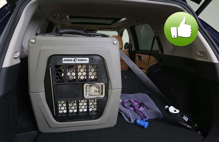 Κλουβιά μεταφοράς: Η χρήση ενός ασφαλούς κλουβιού μεταφοράς κατοικιδίων είναι ένας άλλος τρόπος για να ταξιδέψετε με ασφάλεια, παρέα με τον αγαπημένο σας σκύλο. Τα μικρότερα σκυλιά μπορούν να φιλοξενηθούν σε ένα φορητό κλουβί που μπορεί να ασφαλιστεί στα πίσω καθίσματα με τις ζώνες ασφαλείας και σε συνδυασμό με μαξιλάρια για να περιοριστεί η κίνηση. Τα μικρότερα κλουβιά μπορούν να τοποθετηθούν στο πάτωμα, πίσω από ένα από τα μπροστινά καθίσματα. Τα μεσαία και μεγαλόσωμα κατοικίδια ζώα πρέπει να τοποθετούνται σε ένα ανθεκτικό κλουβί που θα ασφαλίζεται στον χώρο αποσκευών σε SUV ή φορτηγά. Και στις δύο περιπτώσεις, το κλουβί πρέπει να στερεωθεί στο όχημα όσο το δυνατόν ασφαλέστερα.
