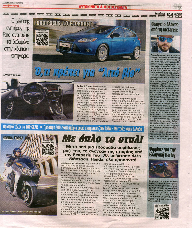 Από την άλλη προσεχώς ένθετο για το αυτοκίνητο ετοιμάζει η εφημερίδα Καθημερινή το οποίο θα επιμελούνται οι Γιάννης Κουτελιέρης και Άρης Γαλανόπουλος.
