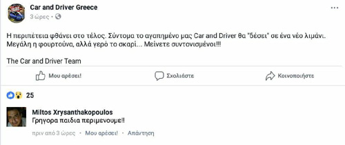 Κανένα χειροπιαστό νέο δεν υπάρχει για το μέλλον του περιοδικού Car and Driver το οποίο έχει να κυκλοφορήσει από τον περασμένο Ιούλιο. Όπως μπορεί ο καθένας να δει ακόμα και η σελίδα στο ίντερνετ είναι πεσμένη εδώ και πολλές εβδομάδες. Παρ’ όλα αυτά ελπίδα υπάρχει…