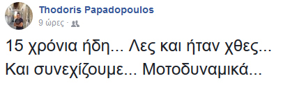 Όχι ένα, ούτε δύο αλλά… 15 χρόνια στην Μοτοδυναμική βρίσκεται ήδη ο Θοδωρής Παπαδόπουλος. Τους ευχόμαστε άλλα τόσα!!!