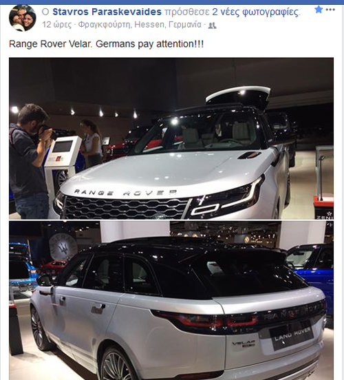 Όταν ο Σταύρος Παρασκευαίδης γράφει: «Range Rover Velar: Germans pay attention», κάτι σημαίνει…