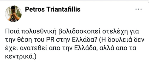 Ποια πολυεθνική εταιρεία σύμφωνα με τον Πέτρο Τριανταφύλλη έχει βάλει γραφείο διαχείρισης προσωπικού να της βρει PR;