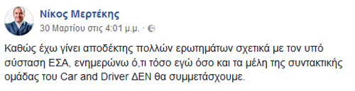 Τη δική του θέση αλλά και των συνεργατών του ξεκαθάρισε ο διευθυντής του Car & Driver Νίκος Μερτέκης