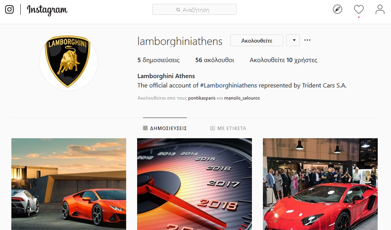 Παρουσία στο Instagram για την Lamborghini Athens. Για να ακολουθήσετε την σελίδα της ελληνικής αντιπροσωπείες πατήστε ΕΔΩ