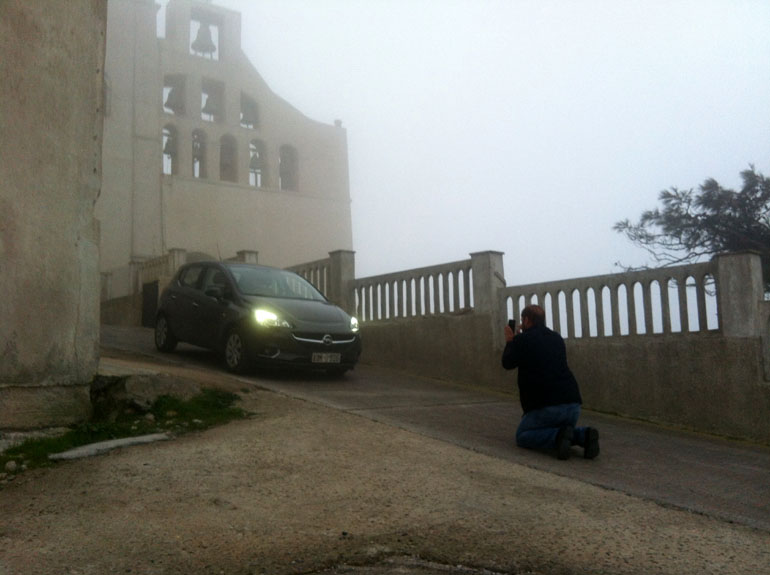 O δημοσιογράφος Βαγγέλης Γκούμας από το Star προσκυνά… για να μπορέσει να τραβήξει φωτογραφία την τελευταία γενιά του Opel Corsa. Εικόνα που απαθανατίσαμε πριν από ένα περίπου χρόνο κατά τη διάρκεια παρουσίασης του αυτοκινήτου στην μαγευτική Σαντορίνη!