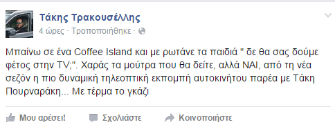 Όχι μία αλλά δύο τηλεοπτικές εκπομπές βρίσκονται στα σκαριά για να βγουν στον αέρα τη φετινή τηλεοπτική σεζόν. Φυσικά θα υπάρξει και το Traction που θα μεταδοθεί από τον ΣΚΑΙ. Λογικά θα τις δούμε στον «αέρα» μετά τις εκλογές.