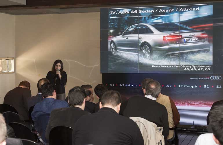 Ποδαρικό… έκανε σε παρουσίαση δημοσιογράφων για την μάρκα Audi η Ρένα Λέκκα, υπεύθυνη προϊόντων για τα Α3, Α6, Α7 και Q5. Διαθέτει μεγάλη εμπειρία καθώς έχει περάσει από VW, Citroen και Renault. Στην Audi βρίσκεται εδώ και ένα χρόνο.