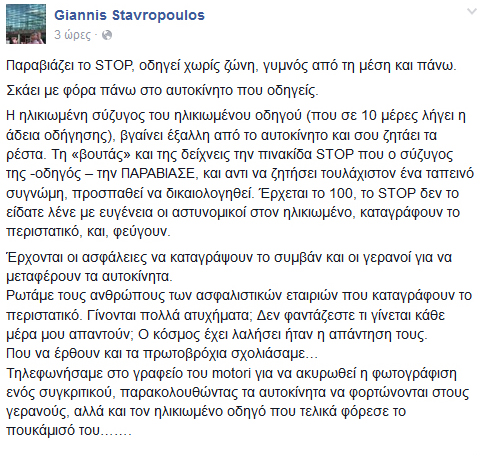 Sexy…. τρακάρισμα, είχε ο δημοσιογράφος Γιάννης Σταυρόπουλος.. Διαβάστε παρακάτω τι έγραψε στο Facebook.