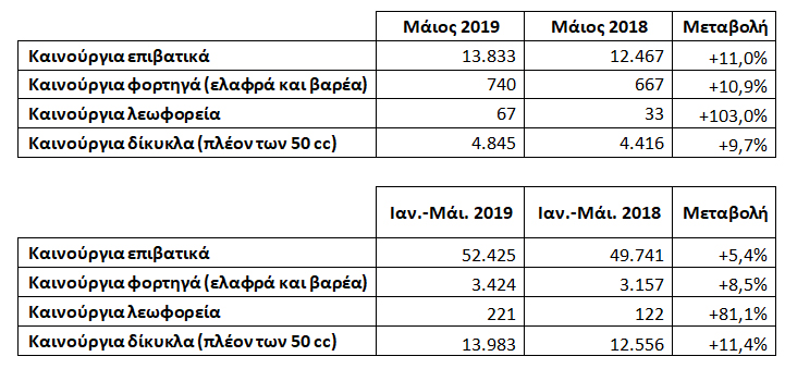 Με θετικό πρόσημο έκλεισε ο Μάιος αλλά και το πεντάμηνο Ιανουαρίου – Μαΐου για τις πωλήσεις, αυτοκινήτων, μοτοσυκλετών, λεωφορείων και φορτηγών.