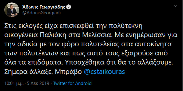 Άλλαξε ο φόρος πολυτελείας στα αυτοκίνητα για πολύτεκνους και την είδηση ανακοίνωσε ο Άδωνις Γεωργιάδης με ανάρτησή του στο Twitter!