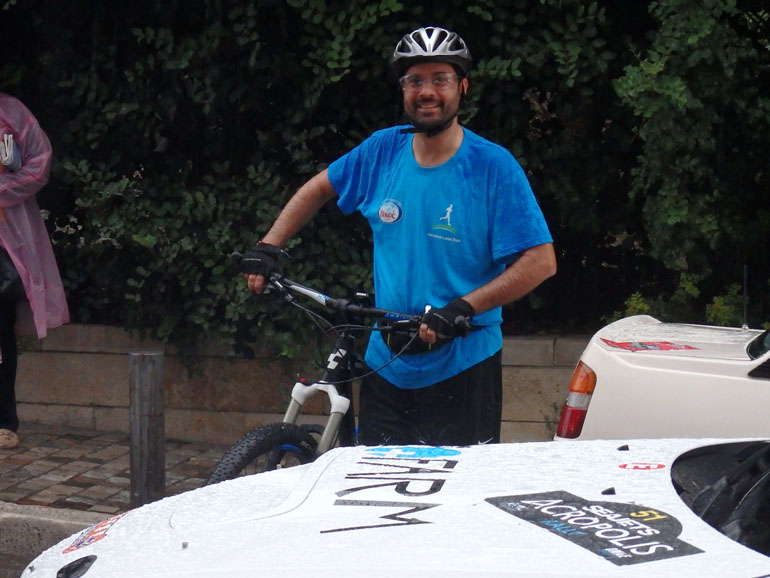 PR… παντός καιρού (εξαιτίας της κακοκαιρίας) αποδείχτηκε ο υπεύθυνος επικοινωνίας των Renault – Dacia στην Ελλάδα, Ιάκωβος Κρομμύδας. Ο φακός τον απαθανάτισε στην Ακρόπολη όπου βρέθηκε το Σάββατο με το ποδήλατό του για την εκκίνηση του Ράλι Ακρόπολις. Προφανώς είχε πάει για να θαυμάσει το Dacia Duster που θα εκτελούσε χρέη πλοηγού αυτοκινήτου “00” στο φετινό SEAJETS Ράλι Ακρόπολις.