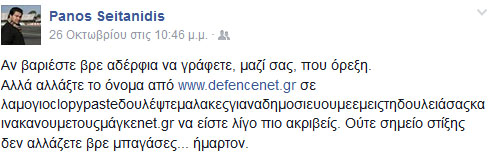 Πολύ… c(l)opy write έχει πέσει εκεί στο defencenet. Ούτε το κόμμα δεν αλλάζουν και φυσικά δεν γίνεται καμία αναφορά στην πηγή ή τον συντάκτη. αυτός είναι και ο λόγος που ο Πάνος Σειτανίδης τα… πήρε στο κρανίο. Με το δίκιο του.