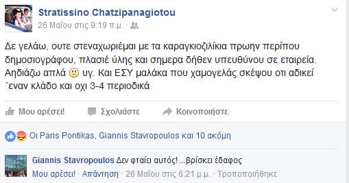 Σε μεγάλο όμιλο που εκδίδει περιοδικά και εφημερίδες, οι εργαζόμενοι έχουν να πληρωθούν από 4 έως 7 μήνες ανάλογα με την συνεργασία (αν είσαι μισθωτός ή με μπλοκάκι). Ευχόμαστε γρήγορα να λυθεί το θέμα…