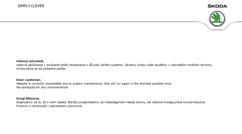 Πεσμένη ήταν η ιστοσελίδα της Skoda την Κυριακή 5 Ιουνίου, προφανώς για να αναβαθμιστεί το περιεχόμενο και να προστεθούν νέα στοιχεία.