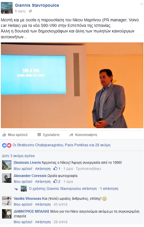 Την άσχημη συνεργασία που έχει με την Volvo Car Hellas γνωστοποίησε ο Δημήτρης Μπαλής με ανάρτησή του στο Facebook. Διαχώρισε ωστόσο τη σχέση του με τον υπεύθυνο επικοινωνίας Νικόλα Μαρτίνο…