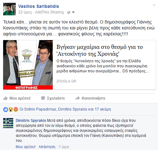 Καυστικός ο Δημήτρης Σπυράκης σε ανάρτηση που έκανε για το «Αυτοκίνητο της Χρονιάς» καθώς όπως λέει εξυπηρετεί συγκεκριμένους δημοσιογράφους και εταιρείες… Για να μην τους παίρνει όλους η μπάλα μήπως θα πρέπει να γράψει και ονόματα;