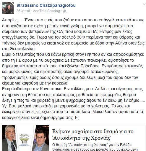 Το έχω απορία πάντως, πως είναι δυνατόν μάχιμοι και σοβαροί συνάδερφοι που βρίσκονται εκ των έσω του θεσμού να μην μπορούν να επιβάλλουν την τάξη και να αλλάζουν τα δεδομένα… Γελάει ο κόσμος και πρέπει επιτέλους να το καταλάβουν όσοι έχουν άλλους σκοπούς από αυτούς της δημοσιογραφίας…