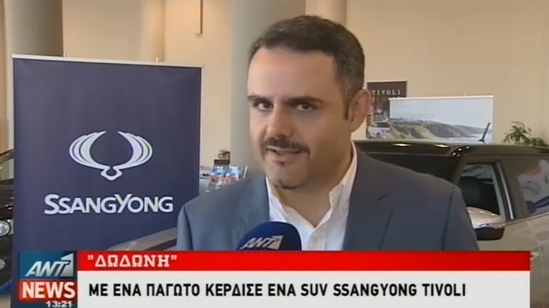 Με ένα παγωτό κέρδισε ένα SsangYong Tivoli! Με αυτό τον τίτλο εμφανίστηκε στο δελτίο ειδήσεων του ΑΝΤ1 και μίλησε ο υπεύθυνος επικοινωνίας της SsangYong Χρήστος Σκιρδής. Ο ίδιος αναφέρθηκε και στον τρόπο που μπορεί ο καθένας να συμμετάσχει και να βγει κερδισμένος με ένα αυτοκίνητο!