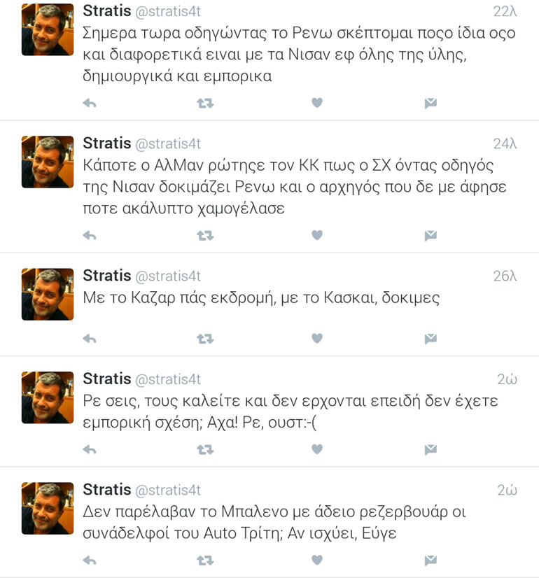 Τι να πει κανείς όταν «μιλάει» διαδικτυακά ο «Δαλαϊ Λάμα» των τεσσάρων τροχών Στράτης Χατζηπαναγιώτου. Σαν γνήσιος παλιός καλός «χεράς» ξέρει να «ζυγίζει» τιμόνια και όχι μόνο…