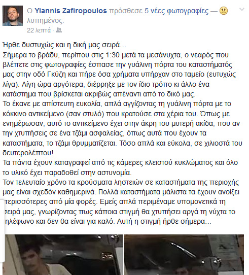 Θύμα ληστείας σε κατάστημα που πλέον διατηρεί έπεσε προ ημερών ο Γιάννης Ζαφειρόπουλος.