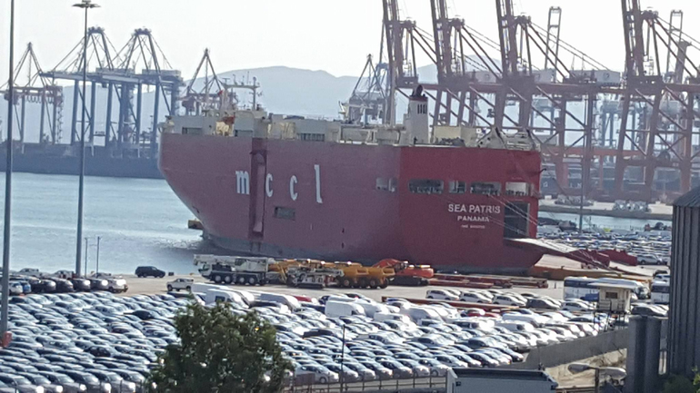 Κρίση, κρίση αλλά τα φορτηγά πλοία ξεφορτώνουν εκατοντάδες αυτοκίνητα στο λιμάνι του Πειραιά… (η παρακάτω φωτογραφία είναι σημερινή)
