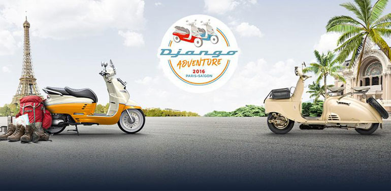 Ποιος είπε πως τα μικρά scooter δεν κάνουν ταξίδια; Σίγουρα όχι οι Γάλλοι Samuel Felice και Ambroise Prince, σκηνοθέτης και βιντεολήπτης αντίστοιχα, που ξεκίνησαν στις 29 Αυγούστου από το Παρίσι με προορισμό τη Σαϊγκόν πάνω σε δύο scooter Peugeot Django 125! Συνολικά θα διασχίσουν 11.149 χλμ. και 50 διαφορετικές πόλεις. Αν θέλετε να είστε on line με την περιπέτεια των δύο τολμηρών αναβατών, μπορείτε να παρακολουθείτε το ταξίδι και τις εμπειρίες τους στην ιστοσελίδα www.django-adventure.com