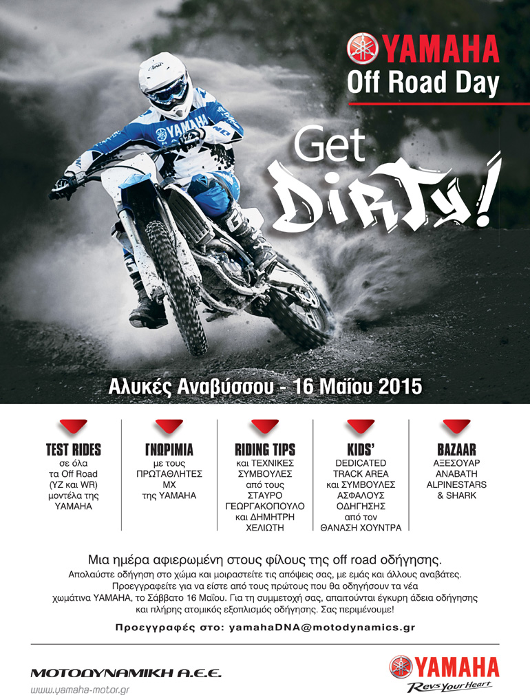 Το Σάββατο 16 Μαΐου στις Αλυκές Αναβύσσου από τις 10:00 το πρωί διοργανώνει η Yamaha ημέρα.. off road οδήγησης τόσο για το κοινό όσο και για δημοσιογράφους.
