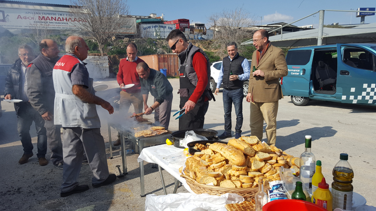 Μάχη… έγινε στις κεντρικές εγκαταστάσεις της Nissan Νικ. Ι Θεοχαράκης την Τσικνοπέμπτη. Η ψησταριά στήθηκε από το πρωί και όλοι πέρασαν για να γευτούν τα σουβλάκια και τις… παντσέτες που η εταιρεία είχε προμηθευτεί από την φάρμα Κεχαγιά, γνωστή από την εμπλοκή της στους αγώνες αυτοκινήτου. Χρέη… αρχιψήστη εκτέλεσε ο Γιάννης Μεθενίτης, ενώ στην ψησταριά είδαμε ακόμα και τον Τάκη Θεοχαράκη, που όπως πάντα θέλει τους υπάλληλους της εταιρείας να νοιώθουν σα στο σπίτι τους και να έρχονται με κάθε ευκαιρία πιο κοντά μεταξύ τους.