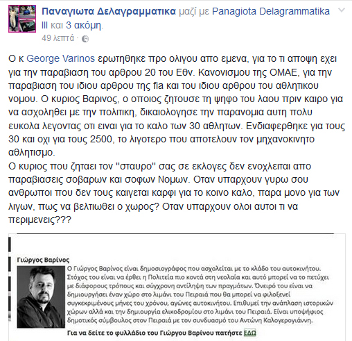 Επίθεση της οδηγού αγώνων Παναγιώτας Δελαγραμμάτικα στον Γιώργο Βαρίνο, πρώην υποψήφιο σε πρόσφατες εκλογές για παρανομίες στο χώρο των αγώνων…