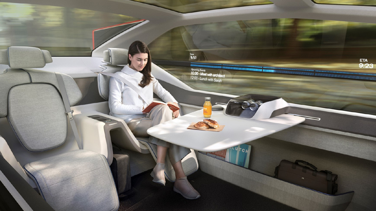 Το εσωτερικό μπορεί να διαμορφωθεί ανάλογα τις ανάγκες των επιβατών, από κινητό γραφείο, έως σαλόνι, υπνοδωμάτιο και χώρος ψυχαγωγίας. Δεν υπάρχουν κλασικά καθίσματα, αλλά «έξυπνες» θέσεις που μετατρέπονται σε πολυθρόνες ή κρεβάτια, ειδικές θήκες και οθόνες σε όλες τις γυάλινες επιφάνειες.