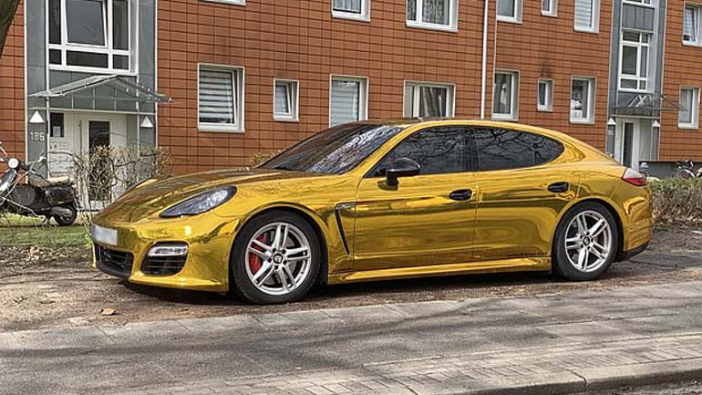 Στην προσπάθεια να ικανοποιήσει τη ματαιοδοξία του και να κάνει επίδειξη του πλούτου του, ο κάτοχος της Panamera επέλεξε να «ντύσει» το αμάξωμα με μία μεμβράνη σε έντονη χρυσή απόχρωση. Το χρώμα ήταν τόσο λαμπερό όμως, που τα βράδια ενοχλούσε τους υπόλοιπους οδηγούς.