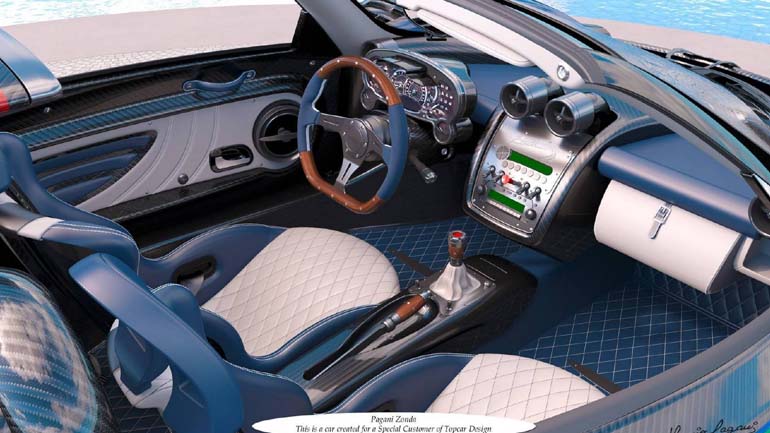 Όλα το σώμα του hypercar είναι από ανθρακονήματα, με το εσωτερικό να περιλαμβάνει δερμάτινες επενδύσεις σε συνδυασμό μπλε και λευκού, ξύλινα διακοσμητικά σε τιμόνι, μοχλό ταχυτήτων και χειρόφρενο, carbon επιφάνειες και αλουμίνιο.