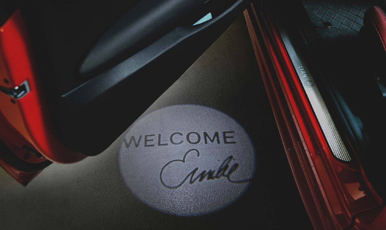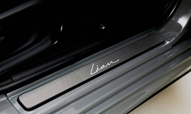 Για παράδειγμα, ο πελάτης μπορεί να επιλέξει μεταξύ πέντε ενθέσεων στο ταμπλό μπροστά από τον συνοδηγό, που απεικονίζουν εικόνες ή κείμενα. Επίσης, μπορεί να διαλέξει τον γραφικό χαρακτήρα και τους σχηματισμούς για την προβολή των φωτεινών σημάτων στο έδαφος ή να προσθέσει το όνομά του στα μαρσπιέ.