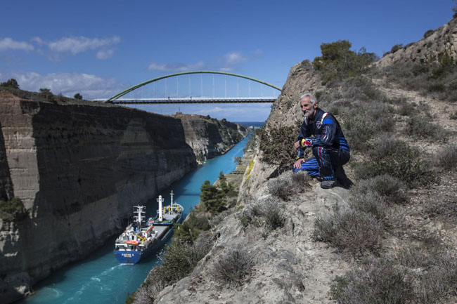 Ο Péter Besenyei με την χαρακτηριστική φυσιογνωμία θεωρείται ένας μύθος των ουρανών και εμπνευστής του πρωταθλήματος Red Bull Air Race. Σήμερα κατάφερε να διασχίσει τη μήκους 6,4 χλμ. Διώρυγα της Κορίνθου με το αεροπλάνο του πραγματοποιώντας έναν μοναδικό άθλο, αλλά και κάνοντας ένα πολυετές όνειρό του πραγματικότητα. H ριψοκίνδυνη πτήση ακριβείας του έμπειρου πιλότου, πραγματοποιήθηκε το πρωί της Τετάρτης 26 Μαρτίου 2014. Οι καιρικές συνθήκες ευνόησαν το εγχείρημα που διήρκεσε συνολικά 20 λεπτά. Το ειδικά σχεδιασμένο αεροπλάνο, ένα μονοθέσιο Extra 300S D-EFBY ισχύος 300+ ίππων, βάρους περίπου 608 κιλών, μήκους 6,6 μέτρων και με άνοιγμα φτερών στα 8 μέτρα, πέρασε μέσα από τα τείχη της Διώρυγας που κατασκευάστηκε το 1893, το πλάτος της οποίας κυμαίνεται από 24 ως 50 μέτρα, σε ένα εγχείρημα που όμοιό του δεν έχει πραγματοποιηθεί στο παρελθόν.