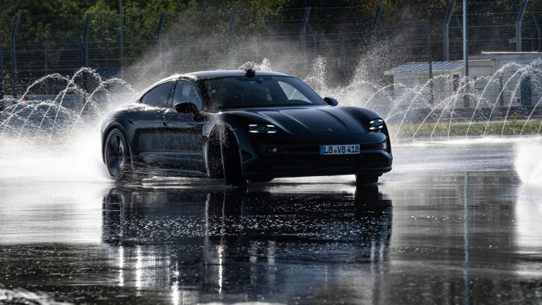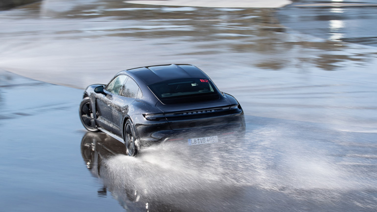 Όπως ανέφερε ο Ολλανδός οδηγός και εκπαιδευτής της γερμανικής φίρμας, η πλαγιολίσθηση με την πισωκίνητη Taycan είναι πιο εύκολη απ΄ όσο νομίζει κανείς, αρκεί να βρίσκεται σε ελεγχόμενο χώρο και να έχει απενεργοποιήσει τα συστήματα ελέγχου πρόσφυσης.