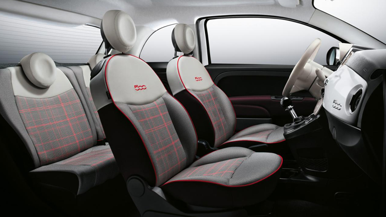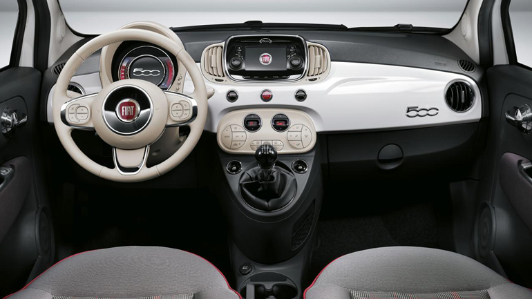 Για την άνεση οδηγού και συνοδηγού, έγιναν κάποιες αναβαθμίσεις στα καθίσματα, ενώ βελτιώθηκε και η ηχομόνωση της καμπίνας. Το Fiat 500 θα προσφέρεται σε τρία επίπεδα εξοπλισμού (Pop, Popstar και Lounge), με τη βασική έκδοση να περιλαμβάνει 7 αερόσακους, ESC, ASR, Hill Holder και Hydraulic Brake Assist, U connect Radio με οθόνη αφής, έξι ηχεία, χειριστήρια στο τιμόνι και LED φώτα ημέρας.