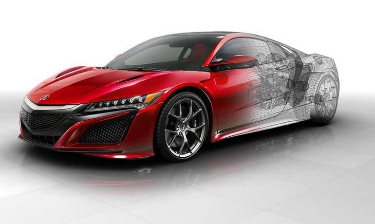 Η Honda τοποθετεί το αυτοκίνητο απέναντι από τις κορυφαίες ευρωπαϊκές προτάσεις, χαρακτηρίζοντάς το ως ένα συναρπαστικό και επαναστατικό τετράτροχο υψηλών επιδόσεων. Όπως αποκαλύφθηκε κατά τη διάρκεια του Παγκοσμίου Συνεδρίου και Έκθεση SAE 2015, το NSX είναι το πρώτο μοντέλο παραγωγής που βασίζεται σε αλουμινένιο χωροδικτύωμα πολλαπλών υλικών, προσφέροντας εξαιρετική ακαμψία και χαμηλό βάρος.